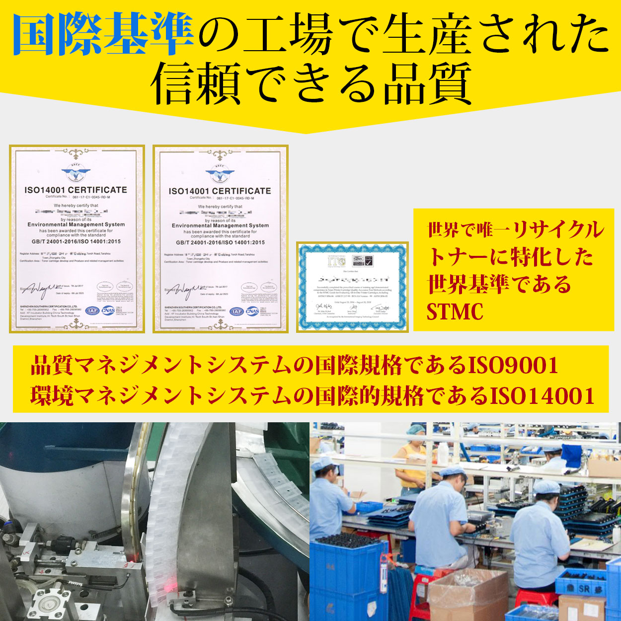IC6CLL ICBK80L エプソン互換インクを生産委託する工場は、『品質は工程で作る』の品質管理の基本を厳守、品質マネジメントシステム ISO9001 環境マネジメントシステムISO14001 EU加盟国基準を満たす適合マーク CEマーキング EU化学物質管理規約 REACH リサイクルトナーの品質基準 STMC すべてを取得しています。これらを取得、維持するためには必要な各種試験設備を備え、定期的な検査を受ける必要があり、国際基準品質が維持されています。